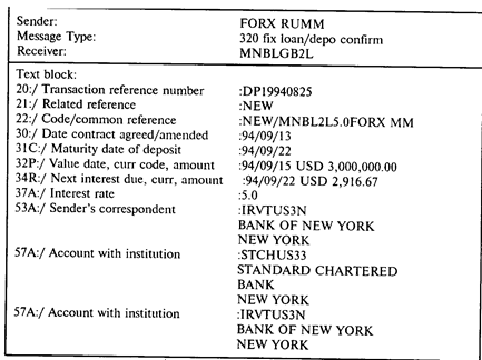 При использовании системы SWIFT используется стандартное сообщение SWIFTMT-320.