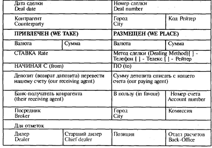 Форма подтверждения заключения договора межбанковского депозита. Посылается стороной, получающей межбанковский депозит.