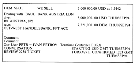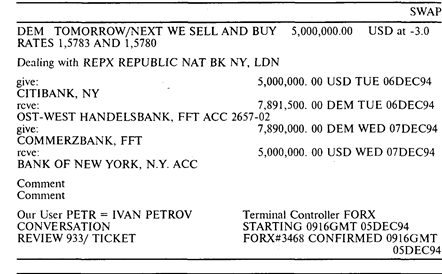 2.5. Сделка считается заключенной, после того как Банк по системе REUTERS или по телефону получает информацию от Компании о заключении сделки с банком-контрагентом (с последующим подтверждением по телексу или системе SWIFT со стороны банка-контрагента).