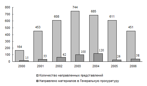 Счетная палата Российской Федерации — единственный государственный орган финансового контроля на федеральном уровне, статус, задачи и порядок деятельности которого определены отдельным законом. Счетная палата Российской Федерации за весь период своей деятельности показала себя как весьма продуктивный орган финансового контроля. Ею было проведено более 1500 контрольных мероприятий, в том числе более 300 в соответствии в соответствии с поручениями палат Федерального Собрания Российской Федерации, запросам и обращениям членов Совета Федерации и депутатов Государственной Думы. По результатам этих контрольных мероприятий было направлено 83 обращения Президенту РФ, 2654 представления и 107 предписаний Правительству РФ и другим государственным органам. Убедительные цифры и большая работа, но общество столкнулось с тем, что, зачастую, наказание за грубейшие нарушения, вскрытые Счетной палатой РФ, не наступало.