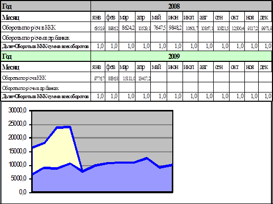 Рисунок А.1 – График динамики оборотов по расчетным счетам за 2008, 2009 гг.