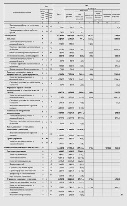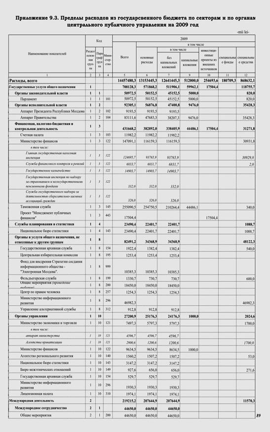 4.Приложение № 9.3 Пределы расходов из государственного бюджета по секторам и по органам центрального публичного управления на 2009 год