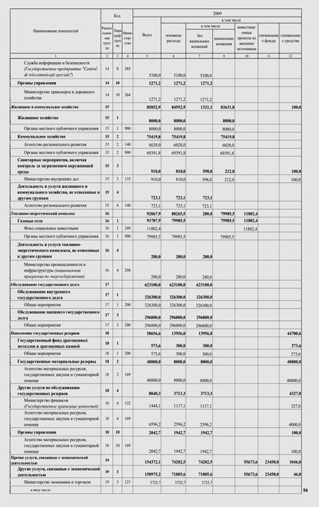 - функционирование главы государства. Отражаются расходы на содержание главы государства, аппарата советников, Полномочных представителей главы государства, аппарата Управления делами главы государства, обеспечение визитов делегаций высших органов власти за рубеж, выплату денежных компенсаций истцам в случае вынесения соответствующих решений Европейским Судом по правам человека.