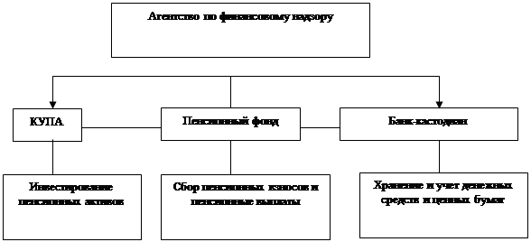 Вся система пенсионного обеспечения Законом возложена на трех юридических лиц: государственный или негосударственный накопительный пенсионный фонд, компании по управлению накопительными пенсионными активами, банк-кастодиан. Рассмотрим структуру системы пенсионного обеспечения на рисунке 1.