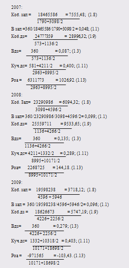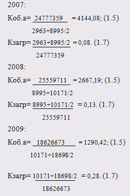 Его значения составили соответственно в 2007 г. – 2,1; в 2008 г. – 1,9; в 2009 г. – 1,3.