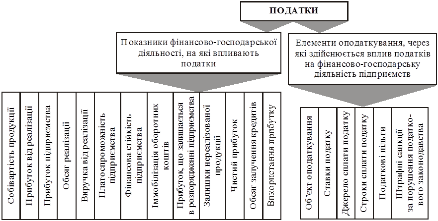Рис. 5.1. Схема впливу податків на фінансово-господарськудіяльність підприємства