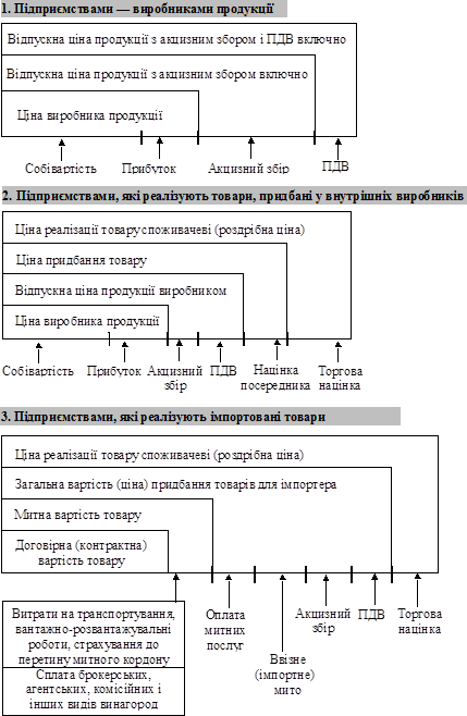 — непрямі податки [податок на додану вартість (ПДВ), aкцизний збір, мито];
