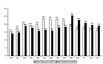 После серьезного снижения ВВП России в 2009 г. на 7,9% в 2010 г. ожидается рост ВВП на уровне 4,0%, а в 2011-2013 гг. – на уровне 3-4% в год. Доходы федерального бюджета в 2011 -2013 годы, по ожидаемой оценке, составят в 2011 г. 17,4% к ВВП, в 2012 г. – 16,5% к ВВП и в 2013г.–16,1% к ВВП, расходы в 2011 году составят 20,9% к ВВП, а в 2012 и 2013гг.–19,6% к ВВП и 19,0% ВВП соответственно (рисунок 1).