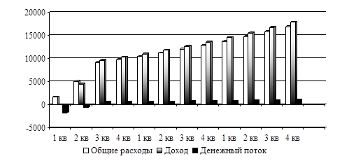 4. Реализованные реальные инвестиции обеспечивают предприятию устойчивый чистый денежный поток. Этот чистый денежный поток формируется за счет амортизационных отчислений от основных средств и нематериальных активов даже в те периоды, когда эксплуатация реализованных инвестиционных проектов не приносит предприятию прибыль.
