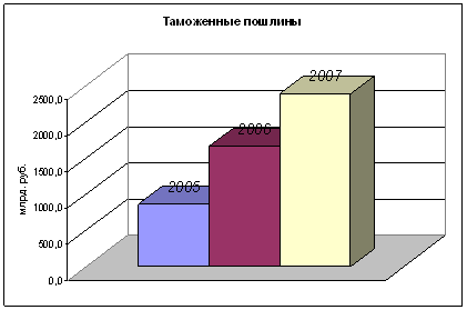 Неналоговые доходы федерального бюджета формируются в соответствии со статьями 41, 42 и 46 Бюджетного Кодекса РФ. Большую часть неналоговых доходов федерального бюджета за 2005 – 2007гг. составляют таможенные пошлины, которые имеют тенденцию к увеличению.