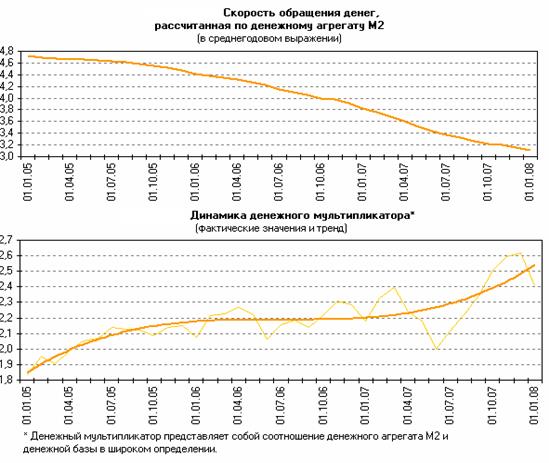 Приложение Е Скорость денежного обращения, рассчитанная по денежному агрегату М2. Динамика денежного мультипликатора