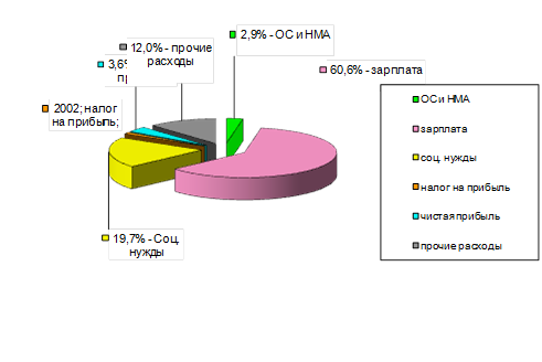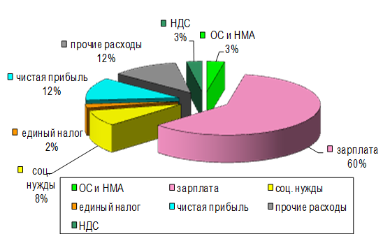 Рис. 2. Структура выручки ООО "Петелин и Ко" в 2009 г.