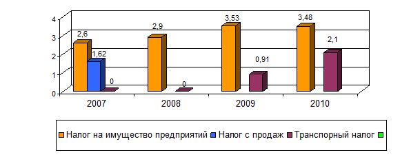 Рис. 2.2.2. Структура региональных налогов в доходной части бюджета РТ за 2007-2010 гг.