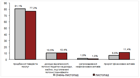 Рис. 3.3. Структура витрат та заощаджень населення України у січні–листопаді 2008 року.