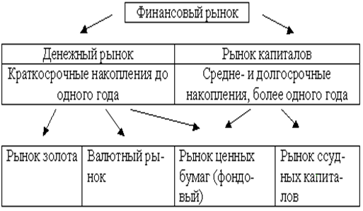 В основе наиболее общего деления финансовых рынков на рынки денежных средств и рынки капитала лежит срок обращения соответствующих финансовых инструментов.