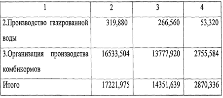 В жаркое время года утолять жажду помогает холодная газированная вода. Себестоимость годового выпуска газированной воды составит 66,560 тыс. руб., а прибыль лишь 53,320 тыс. руб., но проект выгодный, так как инвестиции небольшие и окупятся через четыре месяца. Прибыль в год после установления комбикормового мини завода и реализации комбикормов составит 2755,584 тыс. руб. После внедрения всех мероприятий прибыль ЗАО «Племзавод «Воля» увеличится на 2870,336 тыс. руб., стоимость основных производственных фондов на 284,5 тыс. руб., амортизационные отчисления на 28,45 тыс, руб.