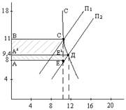 Уравнение кривой П2 после введения налога с оборота; П2 = 6+0,6Ц