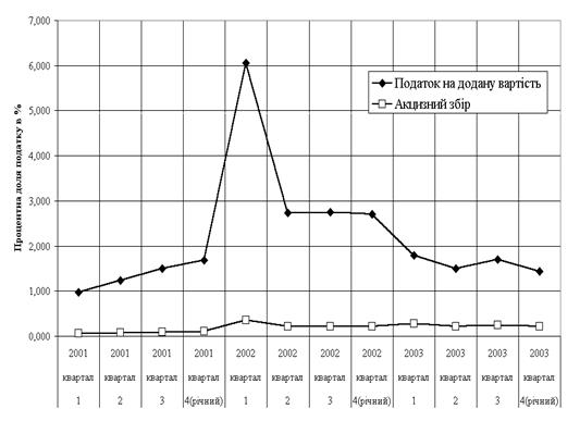 Актуальність результатів досліджень магістерської роботи: Отримані результати свідчать про фактичні тенденції європейського напрямку розвитку системи оподаткування в Україні з переважною долею непрямих податків на споживання, при цьому найбільш динамічно розвиваються специфічні акцизи на окремі товарні групи(акцизний збір та мито) та знижується доля універсального акцизу на загальний перелік товарних груп та послуг(податок на додану вартість). Таким чином податкова система України наближується до оподаткування споживання, а не виробництва (тобто до відміни податку на прибуток підприємства, як проміжного ланцюга доходів кінцевого споживача).