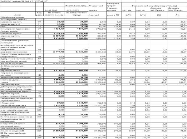 Таблиця Б.1 – Статистичний аналіз динаміки статей балансу СП ЗАТ з ІІ „КИПАРИС” у 2001 – 2002 роках
