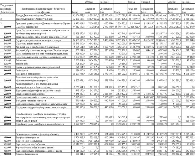 Таблиця В.3 – Динаміка доходів Державного бюджету України у 2002 – 2004 роках