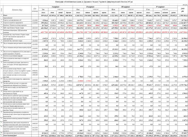 Таблиця Г.1 – План-2005 забезпечення надходжень податків до державного бюджету України по Дніпропетровській Області (структура та обсяги)