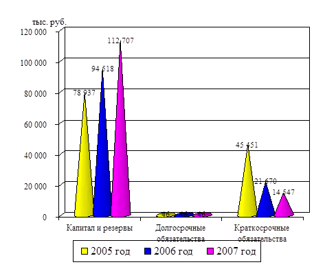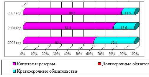 - доля собственного капитала ОАО «НМУ-3» существенна и за период с 2005 года по 2007 год увеличивается с 63,4% до 88,5%;