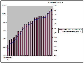 Оптимальный портфель облигаций, таким образом, имеет структуру, представленную в таблице 11 и на рис. 9, а средняя доходность портфеля превысит 9% (рис. 10).
