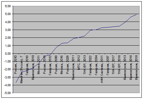 Рис. 11. Доходность еврооблигаций ОАО «МХК «ЕвроХим» на начало 2010 г. (проект)