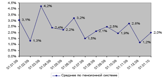 Динамика среднемесячных темпов прироста пенсионных активов (накоплений) в разрезе НПФ