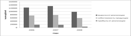 Обобщив все выявленные резервы роста прибыли, мы увидим что, в 2006 году прибыль могла увеличиться на 4154 тысяч рублей, в 2007 году – 4877 тысяч рублей, а в 2008 году – 3074. Таким образом, при грамотном распределении резервов увеличения прибыли можно достичь лучших финансовых результатов.