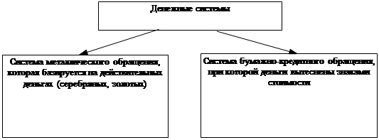 В зависимости от вида денег (деньги как товар, выполняющий роль всеобщего эквивалента, или деньги как знак стоимости) различают денежные системы двух типов (рис.2.1).