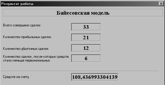 Для анализа эффективности работы модели был также реализован программно Байесовский метод принятия решения.