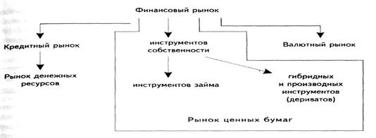 Финансовый рынок – это рынок финансовых ресурсов в первую очередь. Он состоит из взаимосвязанных и дополняющих друг друга, но отдельно функционирующих рынков, на которых для осуществления поставленных задач используются различного вида финансовые инструменты (рис. 1) [4, 23].