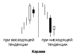 Свеча с маленьким телом, которое находиться в пределах длинного тела предшествующей свечи.