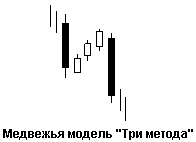 Медвежья модель «три метода» – аналог бычьей модели, но при нисходящей тенденции.