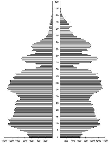 Однако вследствие постепенного перехода в пенсионный возраст лиц военных лет рождения эта группа в 2005 – 2010 годах будет уменьшаться. С 2008 года в неё начнут входить более многочисленные поколения родившихся после Великой Отечественной войны, что обусловит её рост с 2009 года. Показатель демографической нагрузки уменьшится к 2010 году до 586 лиц нетрудоспособного возраста на 1000 человек трудоспособного возраста, против 745 лиц в 2003 году. Потом будет отмечаться увеличение этого показателя, который в 2015 году составит 696 человек.