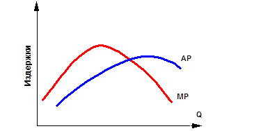 Из рис. 3 видно, что между динамикой изменения предельного продукта (предельной производительности) и предельных издержек (равно как и среднего продукта и средних переменных издержек) существует обратная связь. До тех пор пока предельный (средний) продукт будет расти, предельные (средние переменные) издержки будут снижаться и наоборот. В точках максимального значения предельного и среднего продуктов величина предельных MC и средних переменных AVC издержек будет минимальной.