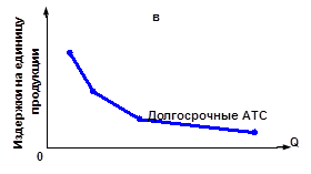 Итак, фирма решила увеличить объём производства, расширить свои мощности. Что будет происходить с её средними общими ATC издержками? Скорее всего, на начальном этапе расширения производства они будут снижаться, а затем, когда в производство будут вовлекаться всё новые и новые мощности, станут возрастать.