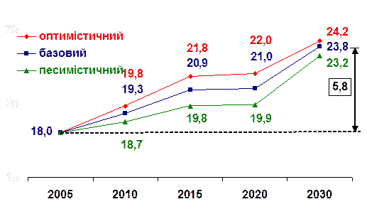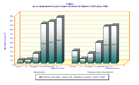 Подальше зростання світової ціни на енергоресурси з 2005 по 2008 рік привело до порушення стабільних довгострокових цін поставки газу з Росії та середньої Азії в Україну. На рис.1.7 наведена динаміка цін на газ для Європи на кордоні «Україна – ЄС» та цін на російський та туркменський газ для України на кордоні «Росія-Україна» у 2002 -2008 роках.