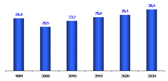 На рис.1.5 – 1.6 наведені основні характеристики споживання та власного добування газу в газовому комплексі України в динаміці за 1991 -2007 роки.