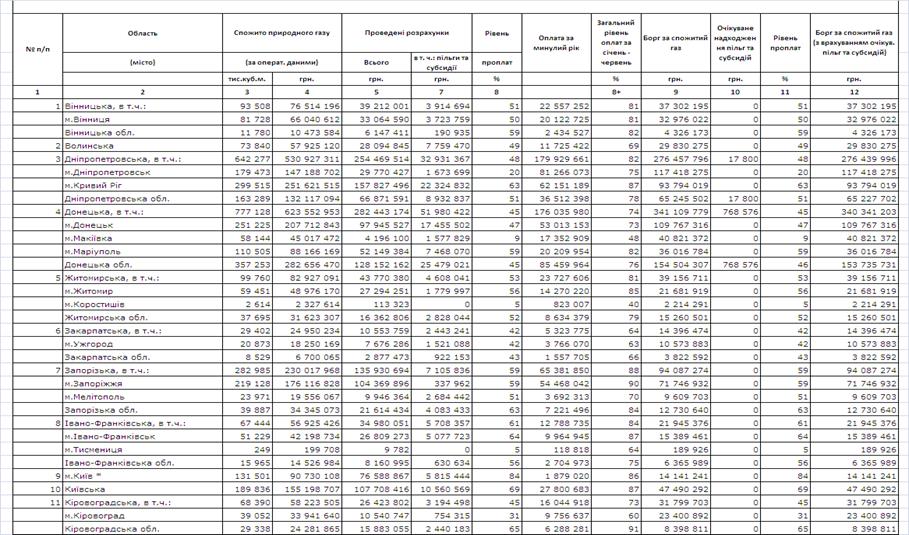 - Коефіцієнт боргу в сегментах «Населення» та «Бюджетні установи» становить 10% -15% від коефіцієнту тарифу;