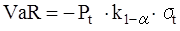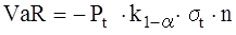 Нарешті, на основі властивостей нормального розподілу визначається значення ризикової вартості. Так, якщо довірчий інтервал заданий на рівні 95%, те величина ризикової вартості дорівнює 1,65 стандартного відхилення портфеля. Таким чином, величина ризикової вартості розраховується за наступною формулою: