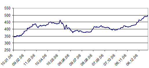 Рис. 2. Щоденні зміни значень індексу ПФТС у 2006 р.
