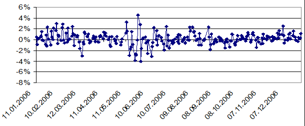 2.2 Обчислення ризику на ринку акцій українських емітентів за даними ПФТС за 2006 р.
