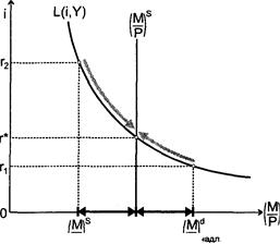 Мал. 5. Встановлення рівноваги в умовах неврівноваженого грошового ринку.