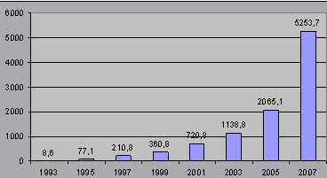 Рис. 4.1. Доходы системы ОМС на территории Бугульмы и Бугульминского района за 1994–2007гг. (руб.)[13]