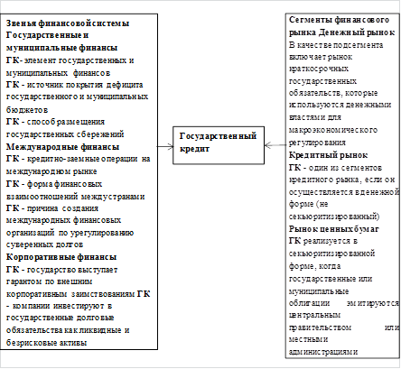 По экономическому содержанию государственный кредит (ГК) представляет собой экономические отношения между государством в лице его органов власти и управления, с одной стороны, и физическими, юридическими лицами, с другой стороны, по поводу предоставления кредитных ресурсов при использовании разнообразных долговых инструментов. Главной особенностью таких отношений служит то, что одним из участников является государство, которое выступает в качестве заемщика, кредитора или гаранта.