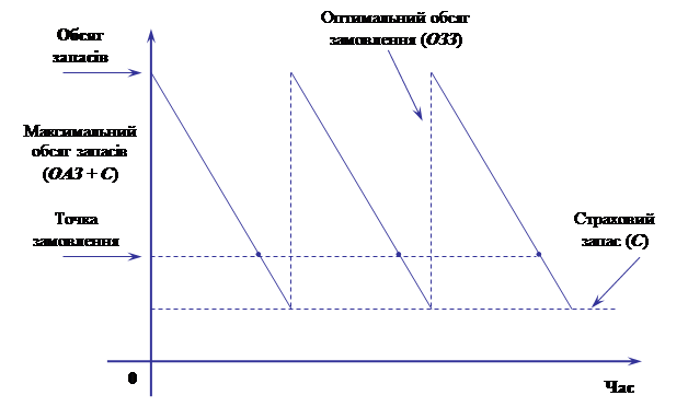 Оскільки мають місце рівномірні постачання та збут продукції, для визначення оптимального обсягу замовлення використана модель Баумоля.