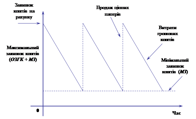 Модель Баумоля дає можливість аналітично виразити залежність між залишком грошових коштів та витратами на його утримання.