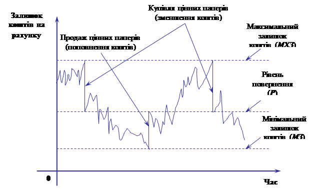 Використовуючи модель Міллера – Орра, розраховано інтервал коливань залишку грошових коштів на рахунку ВАТ «Київпромстройсервіс» та точку повернення.